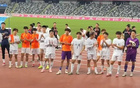 山东球员与球迷一起庆祝胜利。