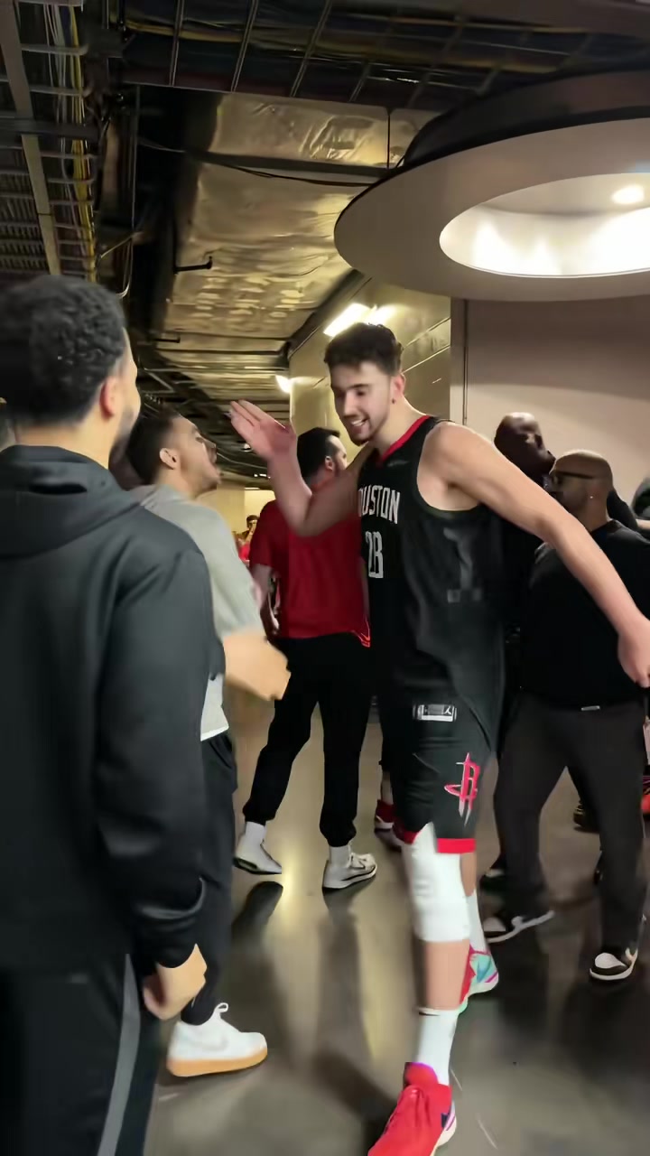 十万奖金到手火箭小伙子们从球员通道一路嗨进更衣室